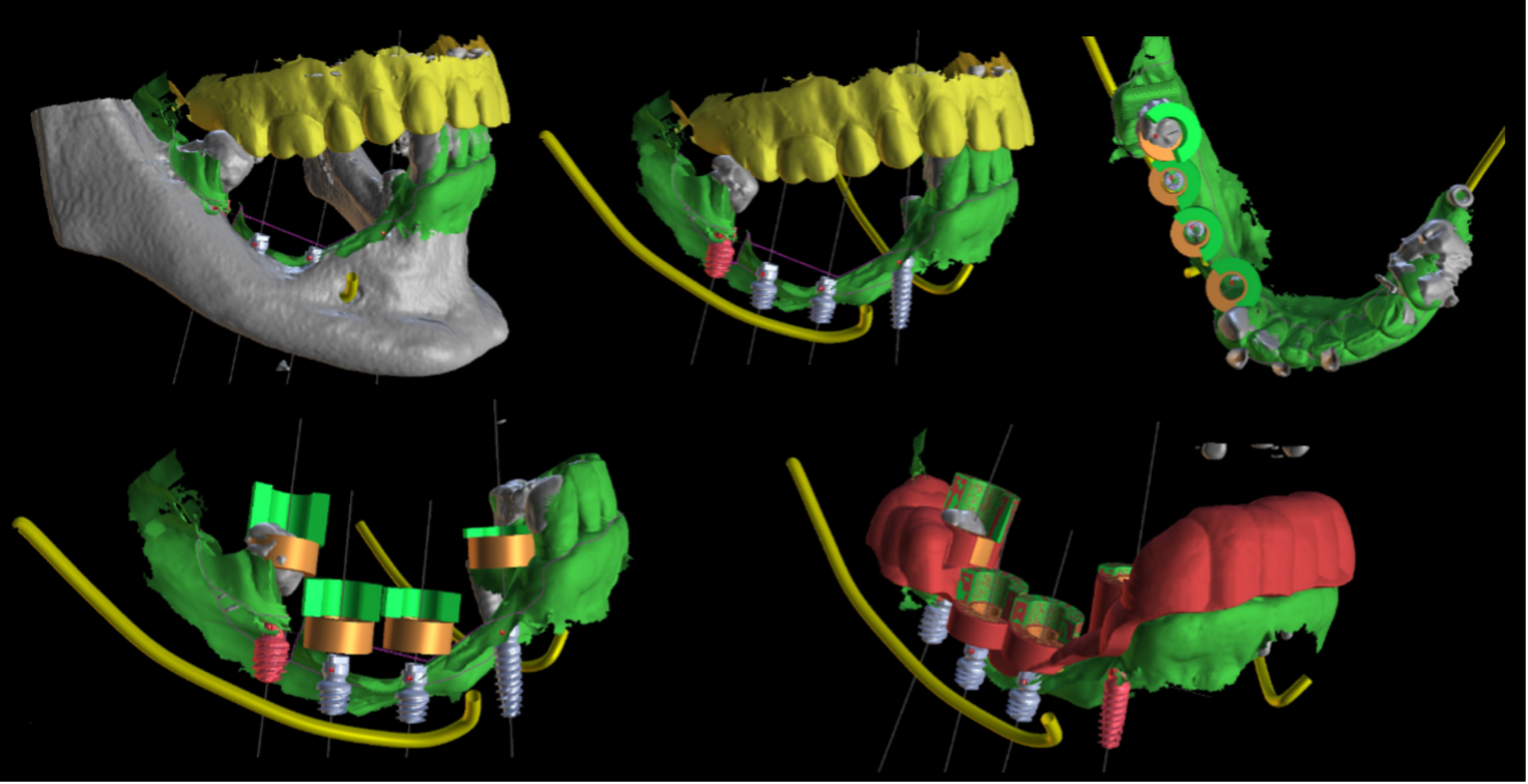Il protocollo chirurgico deve essere definito attraverso lo studio quantitativo e qualitativo dell’osso residuo, sia con metodi di acquisizione con CBCT sia mediante programmi specifici che permettono di studiare il posizionamento degli impianti con asse di inserzione parallelo, in modo da semplificare la successiva fase protesica provvisoria e definitiva.