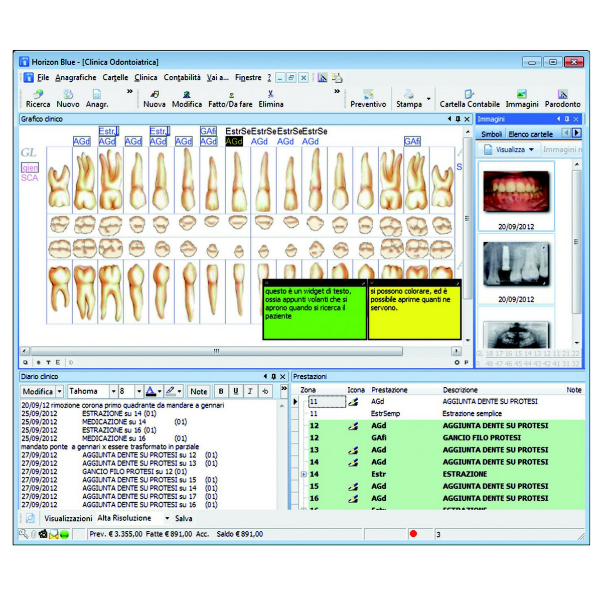 - Cartelle cliniche di diverse specializzazioni: odontoiatrica, ortodontica, paradontale, implantologica