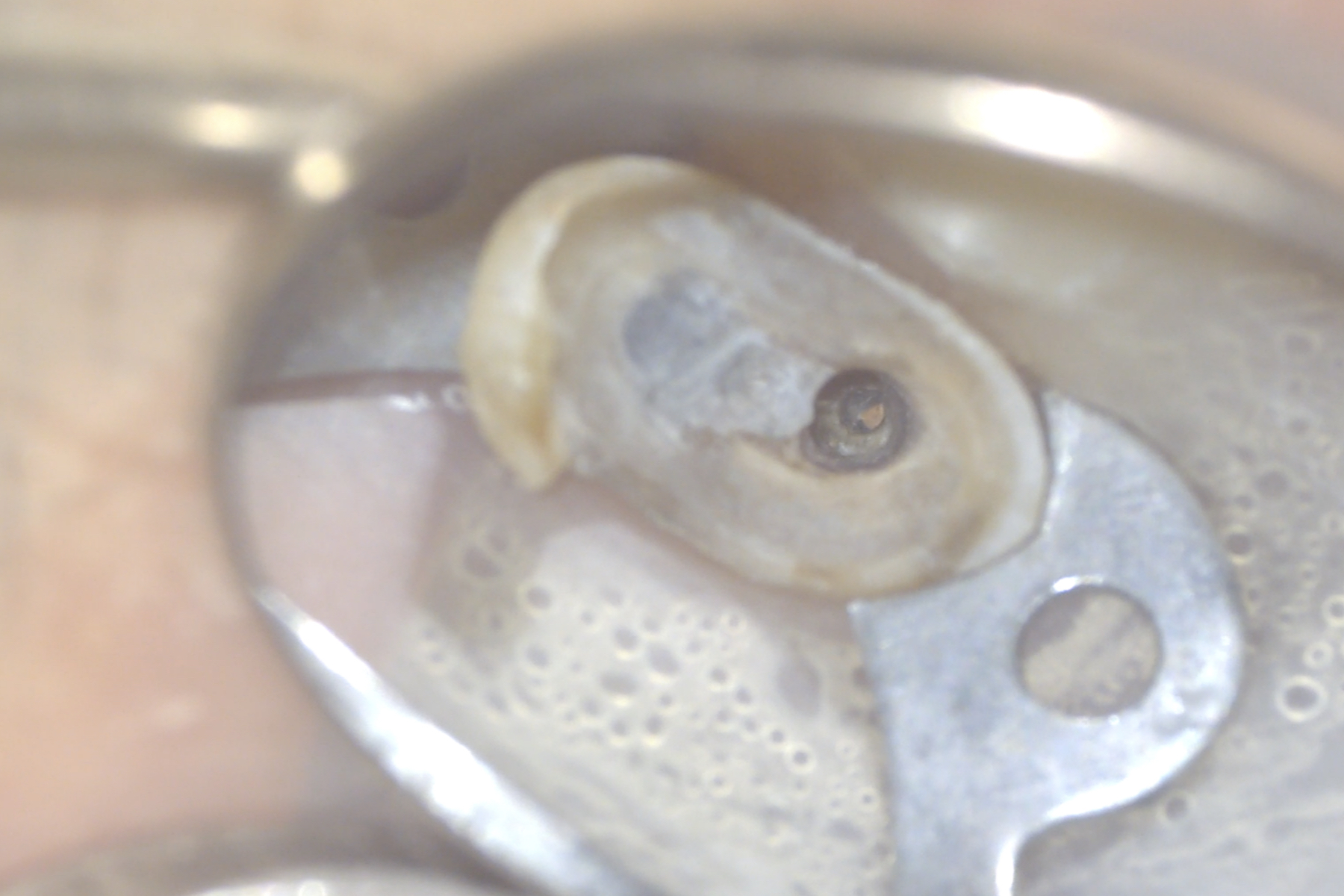 Il piano di cura proposto al paziente prevede il ritrattamento e la ricostruzione adesiva dell’elemento 25 e la successiva copertura cuspidale tramite restauro indiretto. Previa anestesia plessica si esegue l’isolamento dell’elemento mediante diga di gomma. La rimozione del restauro coronale viene eseguita con frese diamantate e abbondante irrigazione. Ultimata questa fase risultano ben visibili i perni in fibra di carbonio cementati nei canali palatale e vestibolare. La rimozione di questi ultimi viene eseguita mediante manipolo ultrasonico con inserto Start-X N.3 (Dentsply-Sirona) consumando i perni stessi e distaccando il cemento composito presente nel canale (Figure 2-3).